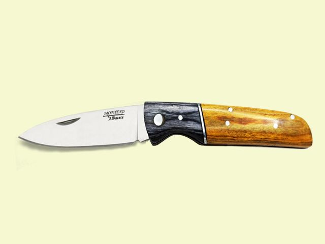 NAVAJA PISTON MANGO DOS MADERAS OLIVO 8.5 cm/hoja