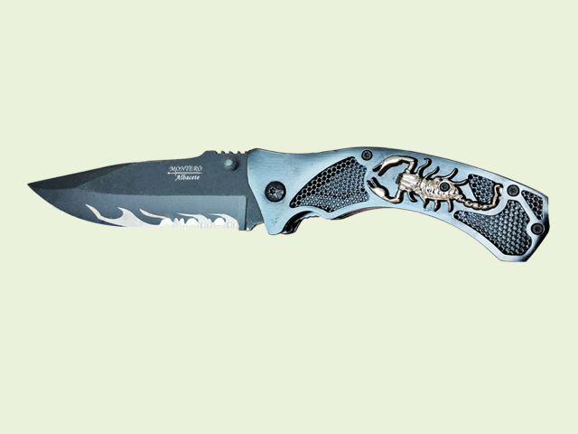 NAVAJA MANGO METALICO ESCORPION 8.5 cm/hoja con Sierra